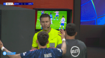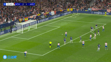 第56分钟,略伦特禁区前沿凌空抽射,皮球击中本·怀特手臂,主裁判回看VAR判罚点球,阿尔瓦雷斯点射命中扳平比分,马德里竞技1-1阿森纳↓