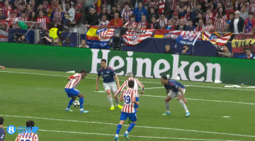 第63分钟,马竞反击推进,禁区内左侧卢克曼分球,格列兹曼不停球左脚兜射,皮球击中横梁弹出!随后的进攻格列兹曼又一脚凌空,皮球被挡出底线↓