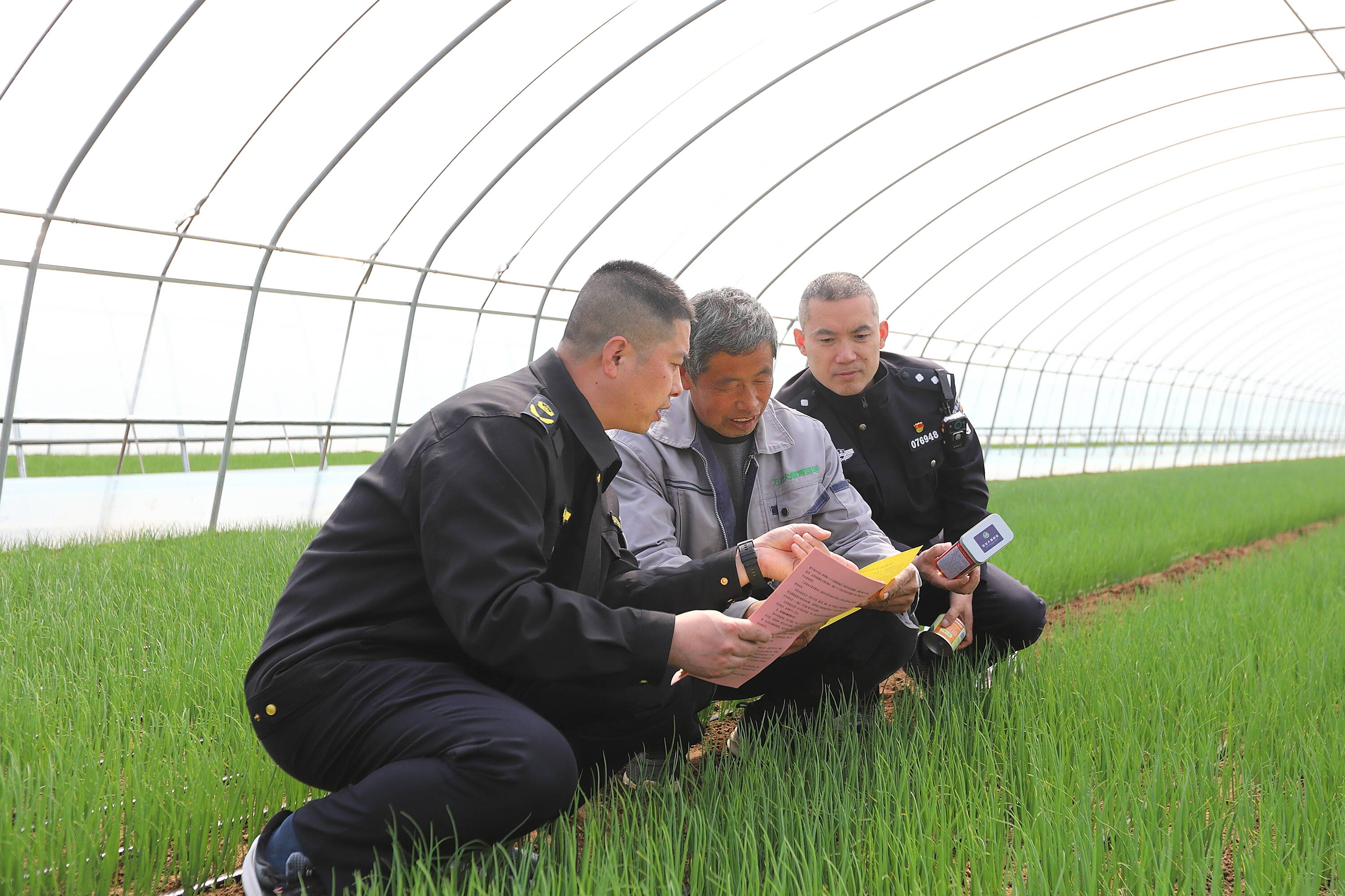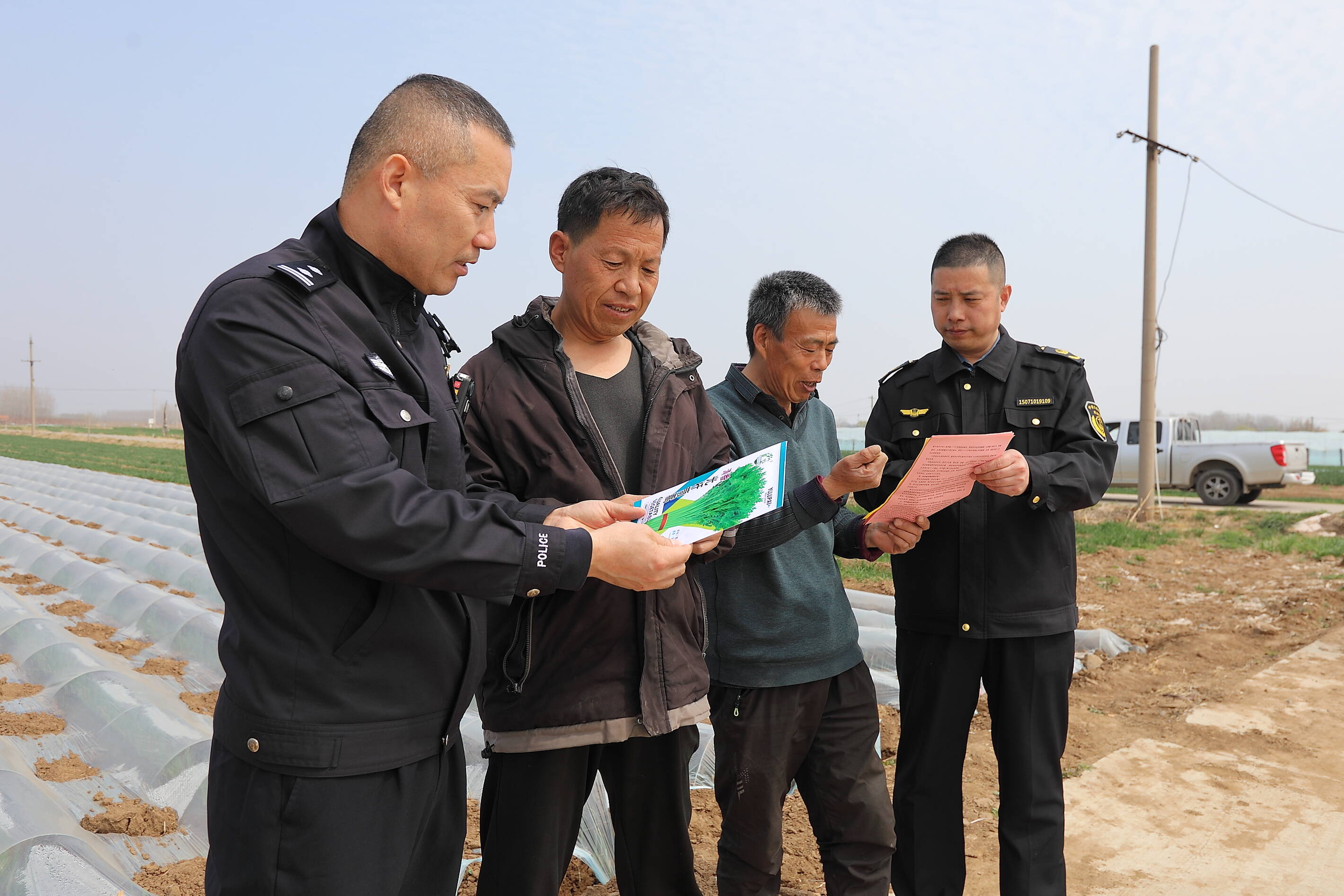 图为3月24日,联勤工作组在安丘市凌河街道大葱种植基地开展农业安全生产防范宣传。