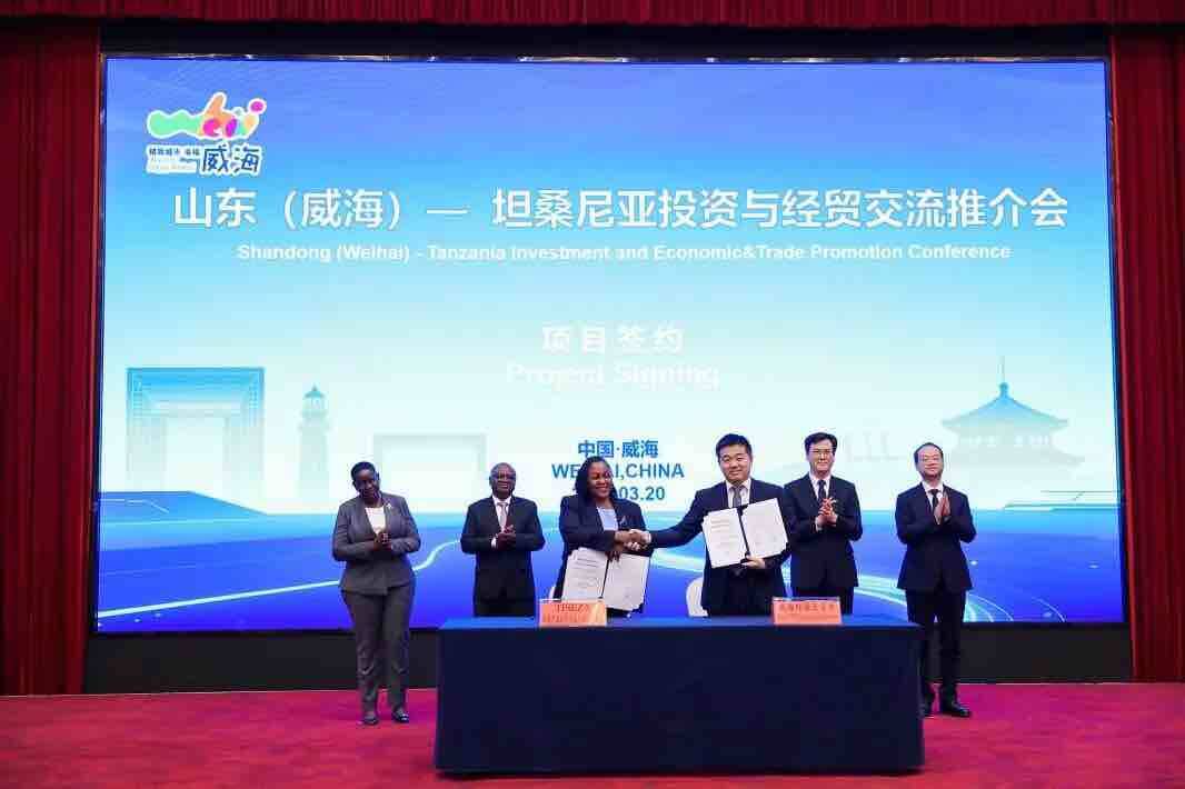 在威海,代表团与威海市政府会谈,双方就深化经贸往来、农业渔业、文旅融合、科教人才等领域合作开展交流。代表团出席了山东(威海)—坦桑尼亚投资经贸交流会,会上,威海综合保税区管委会与坦桑尼亚投资与经济特区管理局、威海华坦供应链管理有限公司与迪尚集团分别签署了战略合作协议。代表团还实地参访了威海华坦供应链管理有限公司与迪尚集团。