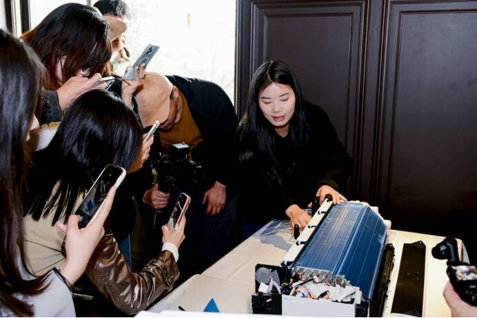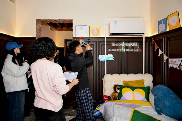 其中,“时光博物馆”陈列1997年海信推出的第一台变频空调,并展出品牌发展历程;“硬核档案馆”展示海信空调“真铜实料”的全铜零部件;“透明实验室”里,工程师现场拆机讲解智慧风E5、E5Pro等新品,展现“真铜实料”品质及海信空调搭载的硬核配置;“智慧生活舱”则搭建真实生活场景,集中呈现多款智慧风新品,适配不同家庭需求,让观众直观感受全系列新品带来的智能居家体验。整个场景布置匠心独具,彰显“好空气 海信造”的初心与坚守。