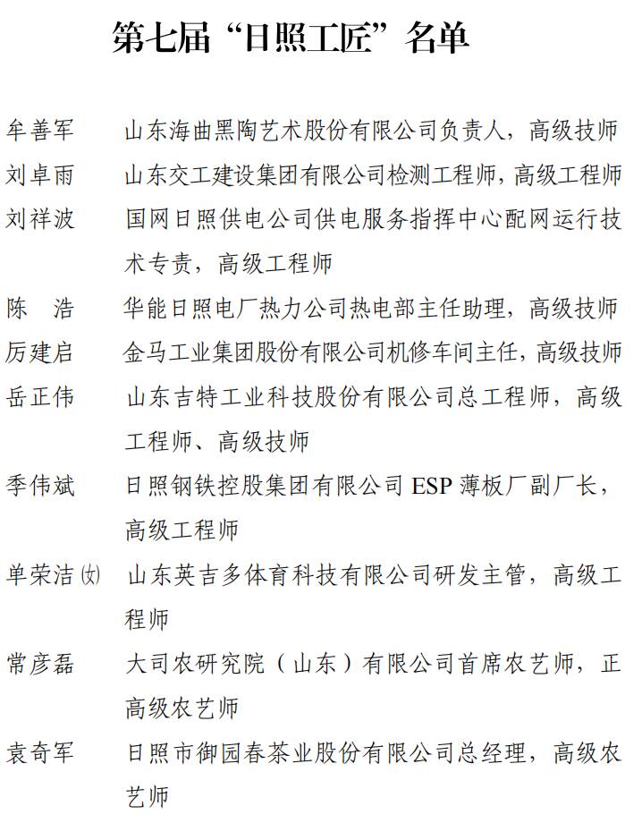 齐鲁网·闪电新闻3月26日讯 近日,日照市人民政府发布通知,公布第七届“日照工匠”名单。