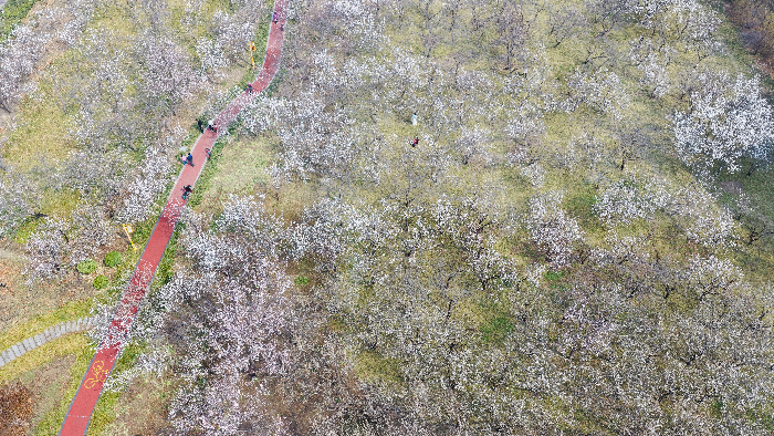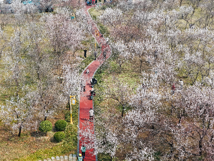 正值风和日暖,春日渐浓,市民漫步于春华秋实园的杏林花海,能揽一怀春光,亦能赏满目繁花,在烂漫花枝间驻足流连,尽享盎然春意与惬意时光。