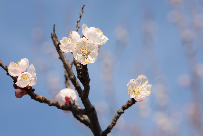 市城管局工作人员介绍,杏花属于蔷薇科、杏属落叶乔木,也是滨州本土极具代表性的早春花木。常见的杏花花苞初绽时,略带一抹胭脂粉晕;盛放时花瓣舒展轻薄,白中透粉、粉里含润,朵朵紧挨、簇簇相依。花开之时,叶芽悄然萌发,花叶相映,更添几分生机。