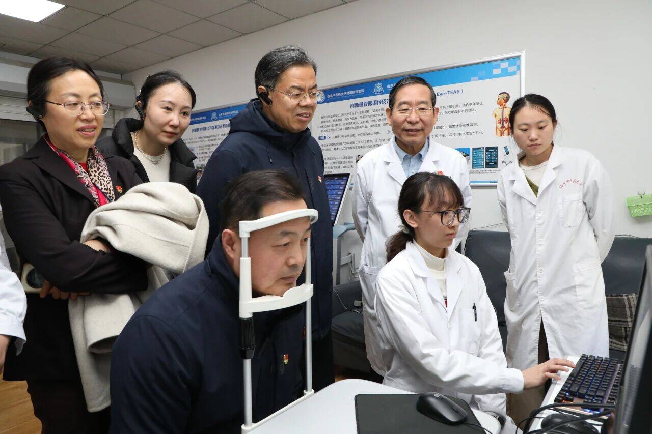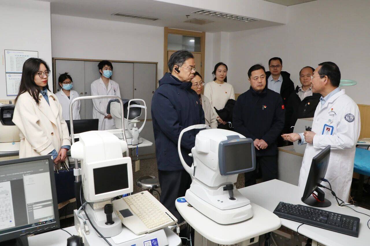 活动伊始,山东省卫健委医养健康处党支部一行先后实地调研医院门诊部、干眼视疲劳中心、屈光手术中心、儿童眼科医院门诊,详细了解山东中医药大学附属眼科医院专科建设、诊疗服务、公益惠民、儿童青少年近视防控等工作开展情况,对医院以党建引领学科发展、用心守护群众眼健康的务实举措给予充分肯定。