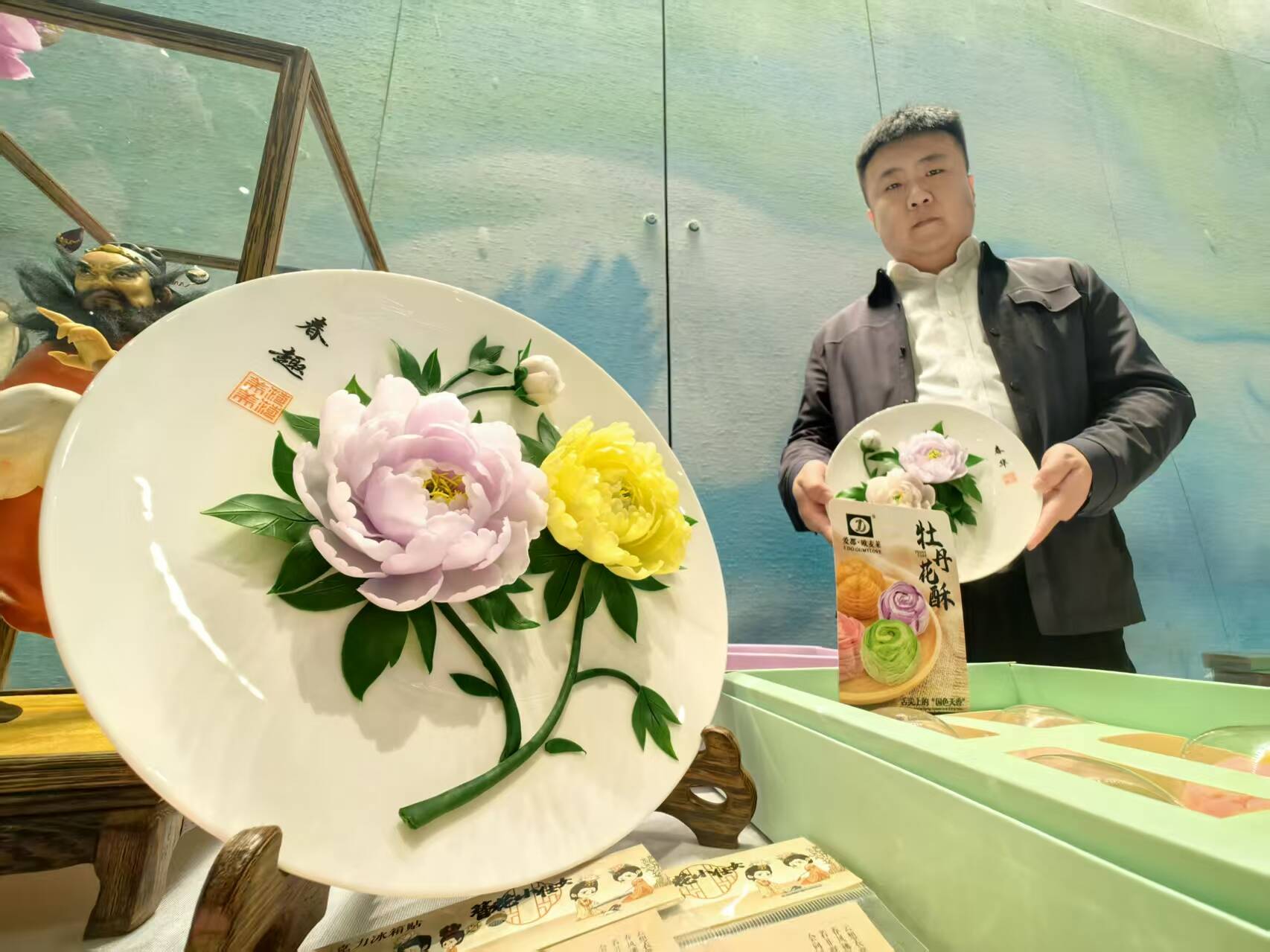 “这是用牡丹花做的吗……”“像牡丹花一样的牡丹酥,分明就是一件艺术品,真舍不得吃……”在特色文创商品展区,牡丹瓷、牡丹面塑、牡丹酥、牡丹茶、牡丹籽油、牡丹特色冰箱贴、牡丹卡通文创等特色商品吸引着市民驻足欣赏、咨询,一朵牡丹花的“七十二变”让大家叹为观止。
