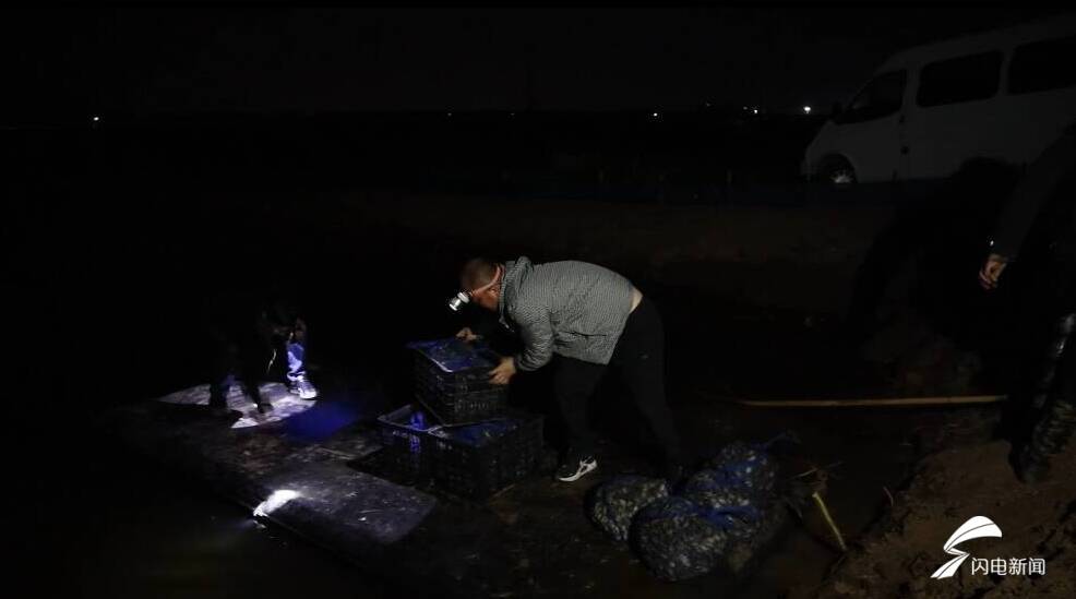 夜幕降临,东平街道东平湖大闸蟹养殖基地内却灯火通明。养殖户顾行证头戴照明灯,正与工作人员忙碌地进行蟹苗投放。一只只鲜活的蟹苗争先恐后跃入水中,在东平湖水的滋养下,正式开启水下生长之旅。