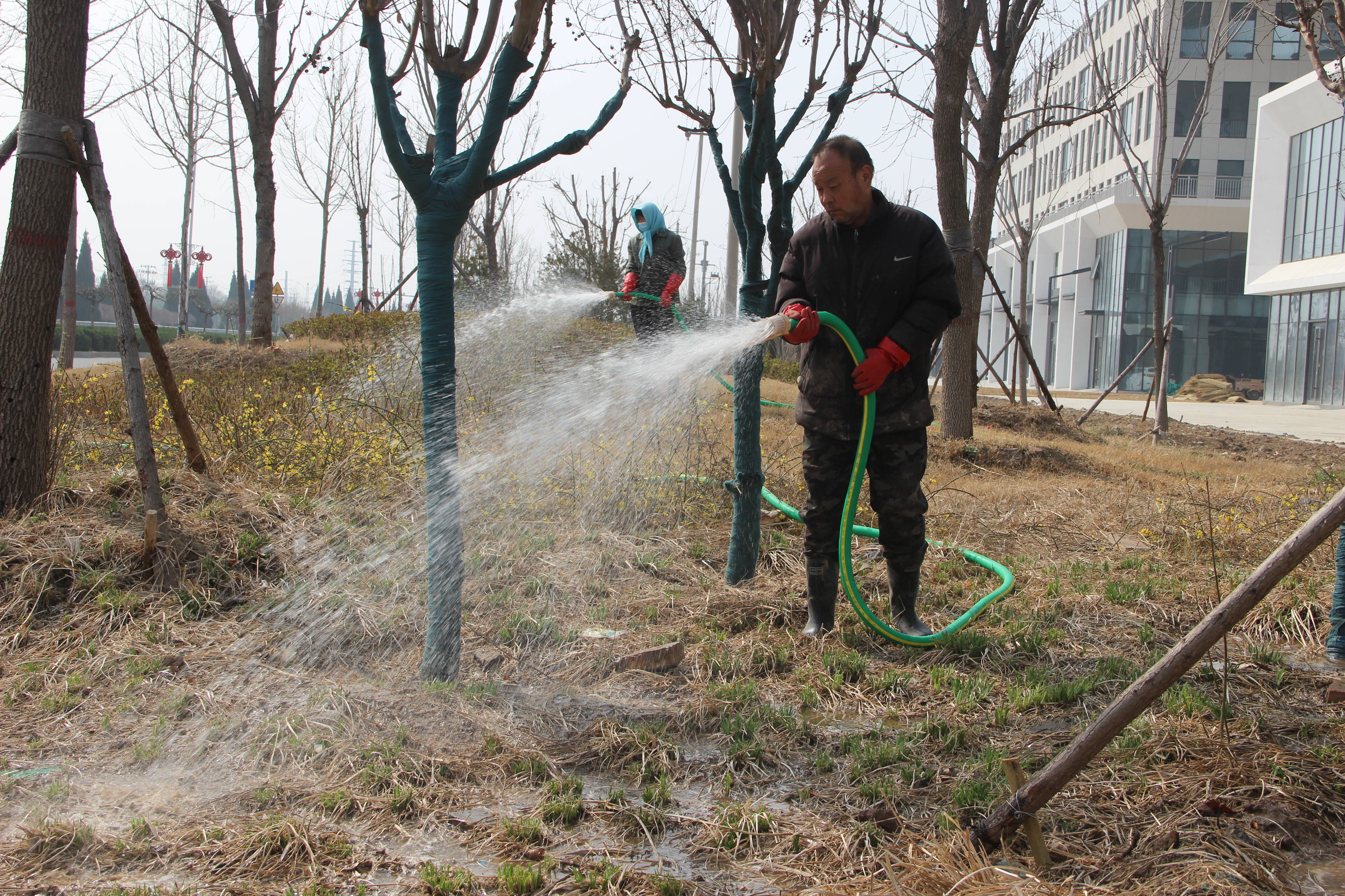 在精细保洁的基础上,县综合行政执法局同步推进精细养护工作,绘就城市春景。工作人员抢抓春季苗木管护关键期,全面开启城区绿化养护工作,通过科学药剂治理,有效防范春季常见病虫害;采取人工灌溉方式,为各类苗木浇足“返青水”,保障苗木顺利返青;对行道树、花灌木进行疏枝整形,精准清除枯死枝、剪除过密枝,提升绿化景观效果。截至目前,已完成行道树修剪1045株、返青水浇灌150000平方米、根施农药11035株,以绣花功夫呵护城市绿植。