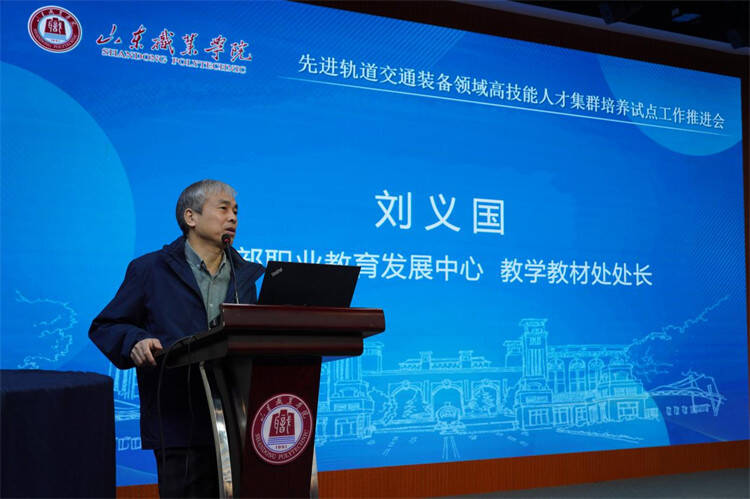 齐鲁网·闪电新闻3月27日讯 日前,先进轨道交通装备领域高技能人才集群培养试点工作推进会在山东职业学院召开。教育部职业教育发展中心教学教材部处长刘义国、山东职业学院院长郭培谦等人出席会议并致辞。