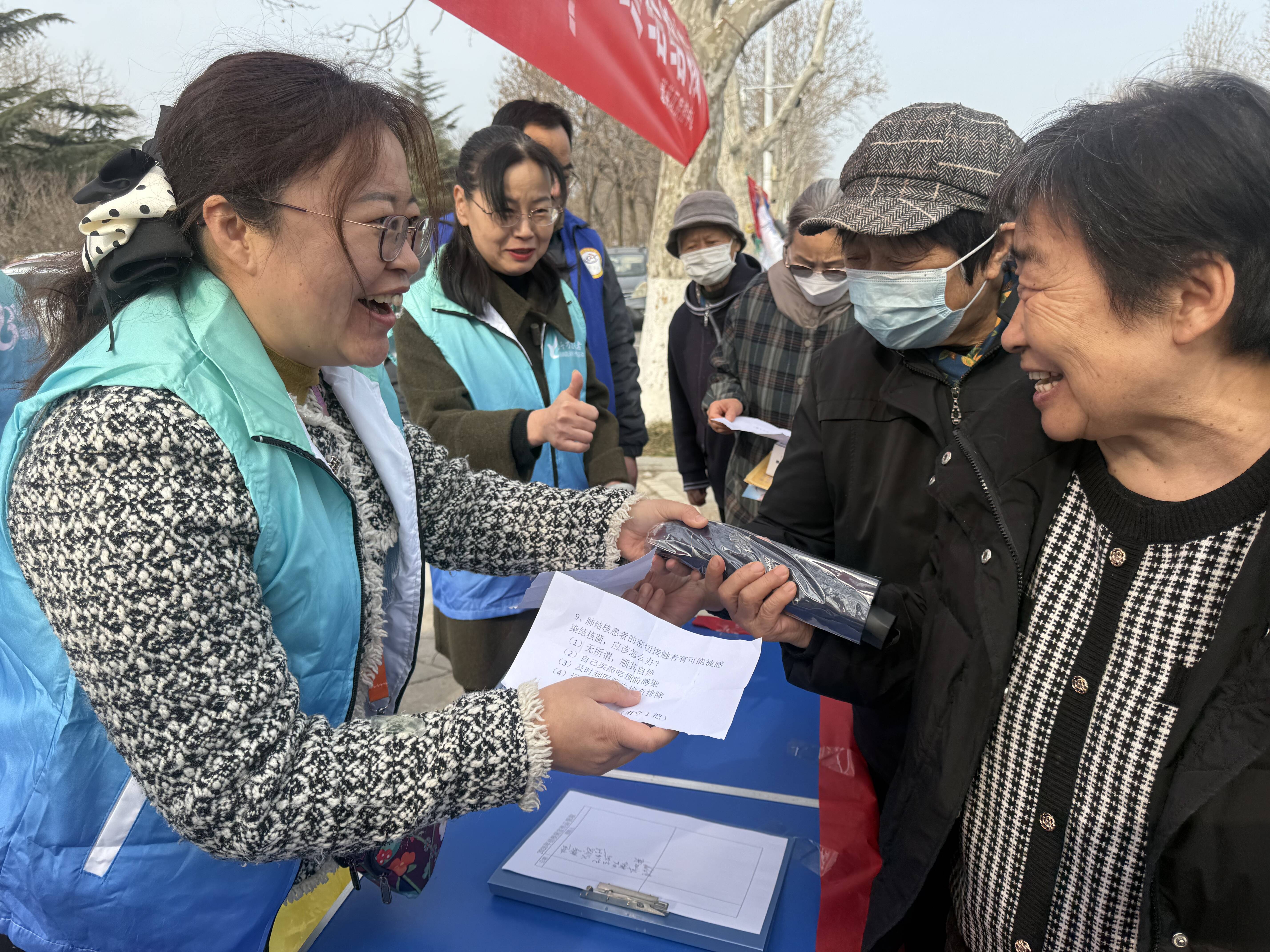 本次活动由蓬莱区卫健局统一组织,城区各医疗卫生单位抽调骨干医护人员组成专业服务团队,现场设置健康咨询台,为市民提供全方位的健康服务。义诊现场,医护人员耐心为前来咨询的市民测量血压、血糖,结核门诊专家开展结核病相关问诊筛查,针对咳嗽、咳痰等结核病典型症状进行专业解答,为市民提供个性化的健康指导和诊疗建议。同时,医护人员用通俗易懂的语言向市民讲解结核病的传播途径、预防措施、早期识别方法及国家免费治疗政策,重点提醒老年、体弱等重点人群做好日常防护,做到早发现、早诊断、早治疗。