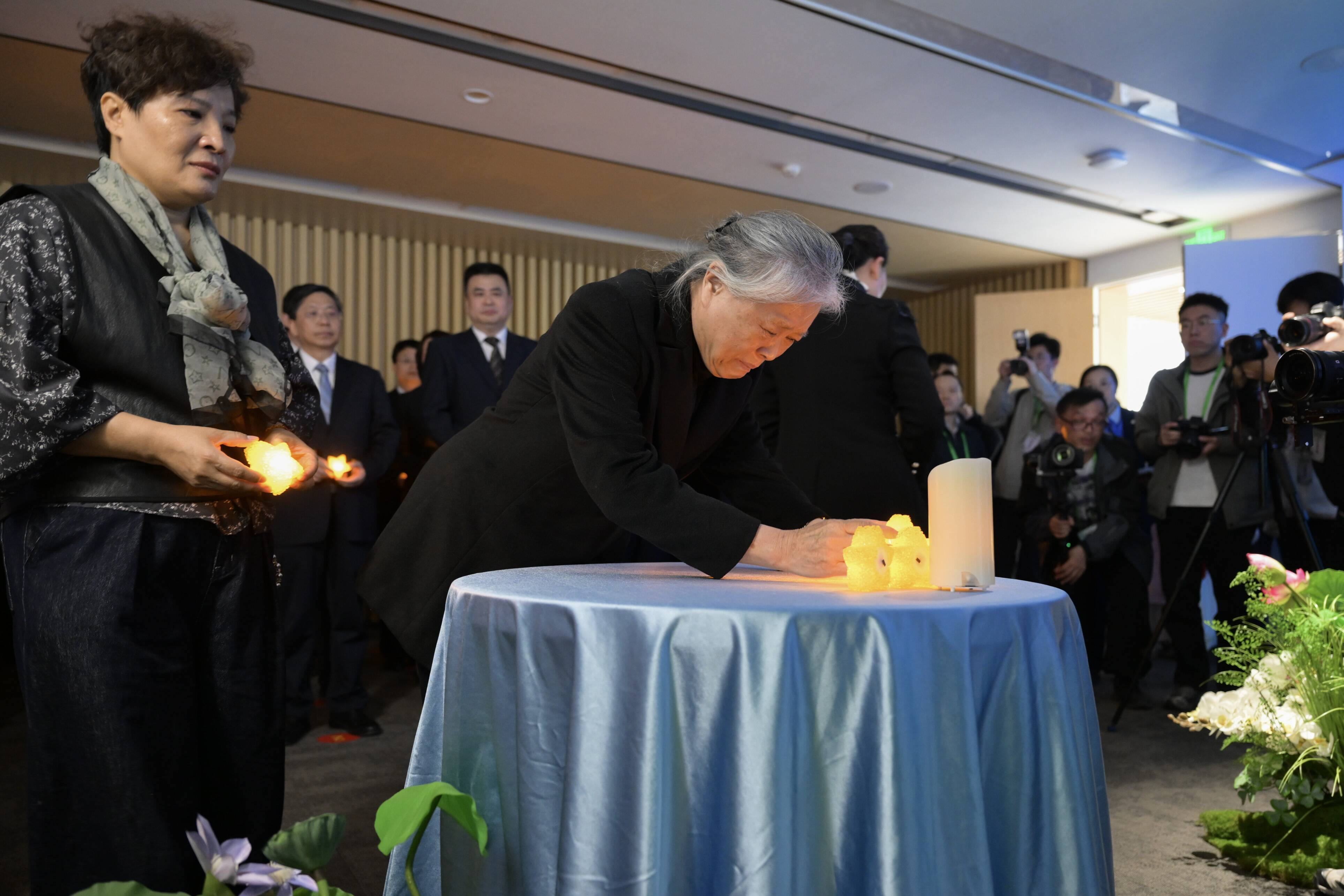 在山东省暨济南市遗体捐献纪念广场,全体人员向捐献者默哀致敬并向纪念碑献花,现场为8位捐献者举行数字礼葬仪式,通过AI数字人技术呈现捐献者自述信,以科技赋能缅怀,让生命记忆永续。