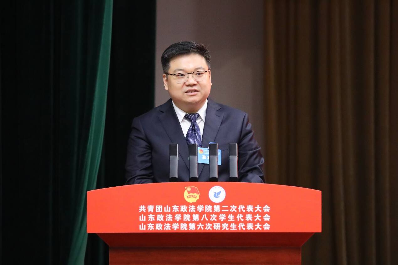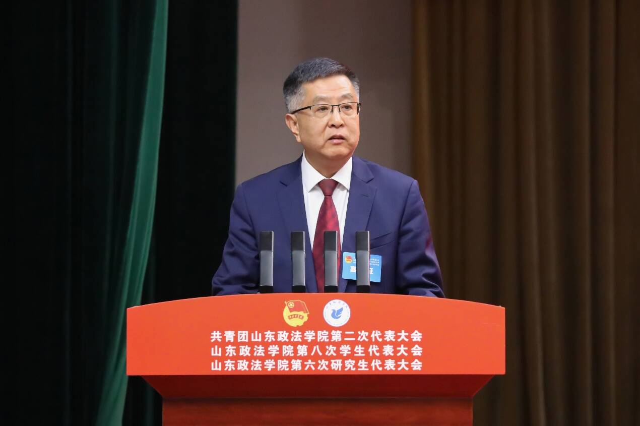 盛夏代表共青团山东省委向大会的召开表示热烈祝贺,对学校高质量发展和共青团工作给予充分肯定。他对全校各级团组织和团员青年提出四点希望:一要紧扣“政治学校”功能定位,强化理论武装,引领青年学子坚定不移听党话、跟党走,争做新时代好青年;二要扛牢“先锋力量”使命职责,发挥法学专业优势,擦亮法治服务品牌,激励青年学子勇当法治建设的排头兵和生力军;三要发挥“桥梁纽带”关键作用,聚焦青年急难愁盼,争做青年学子成长成才的贴心人和引路人;四要聚焦“先进组织”建设目标,深化团学改革,坚持从严治团、从严治会,锻造过硬队伍、树立清新形象。希望全校团员青年胸怀法治理想、勤学笃行、担当实干,努力成长为德法兼修的高素质法治人才,不断开创学校共青团和青年工作新局面,为新时代社会主义现代化强省建设贡献青春力量。