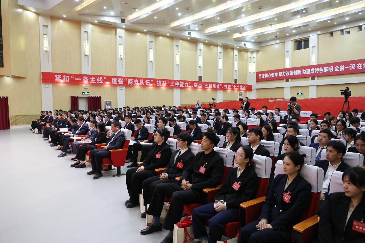 会上,贾俊涛代表共青团山东政法学院第一届委员会作题为《高举团旗跟党走 挺膺担当建新功 为建设高水平政法类大学凝聚青春动能》的工作报告。报告全面总结了学校第一次团代会以来的共青团工作,深刻分析了共青团工作面临的形势与挑战,提出未来五年将深入实施“青春铸魂”“青春强基”“青春建功”“青春赋能”“青春润心”五项重点工程,动员引领广大团员青年奋进新征程、建功“十五五”,为加快建设特色鲜明、全省一流、在全国有重要影响的应用型政法类大学,服务法治中国、法治山东建设凝聚磅礴青春动能。