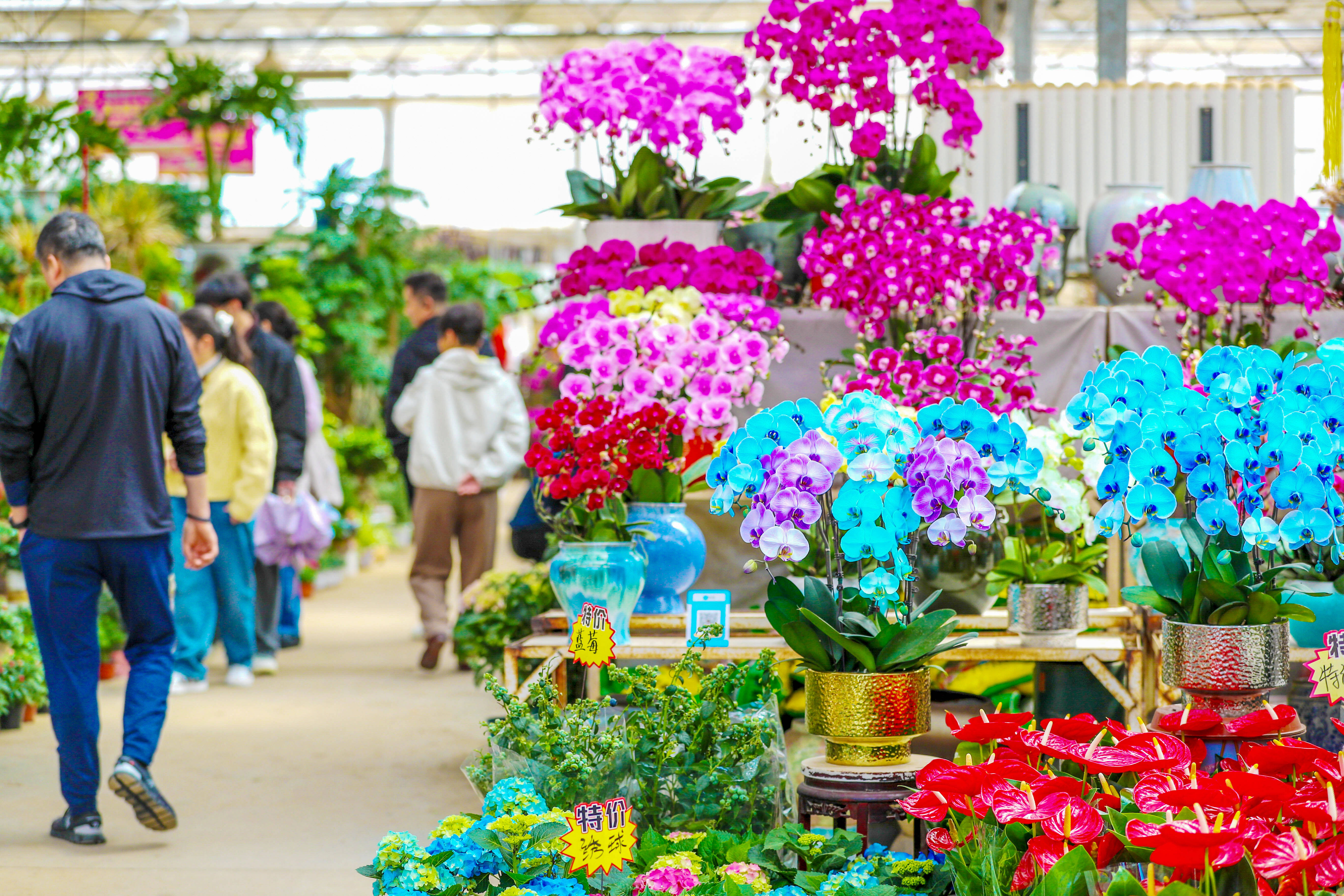 图为市民在山东青岛市崂山区青岛枯桃花卉交易中心消费、游览