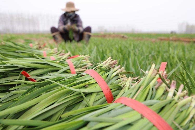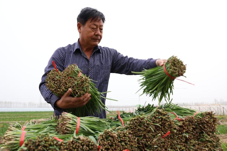 走进耿家村韭菜种植基地,一片绿意盎然,一垄垄鲜嫩的韭菜长势喜人,“韭”香四溢。“今年的露天头茬韭菜亩产在1500公斤左右,口感辛香,批发价每斤在1.5元至1.6元之间。”耿家村种植户李祥军边忙着将捆扎好的韭菜装车边说。