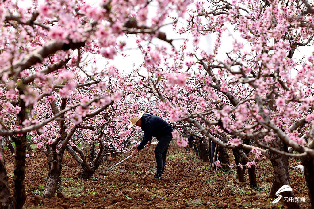 齐鲁网·闪电新闻3月31日讯 3月31日,山东枣庄,农民抢抓农时开展春耕、春管、春收等农事活动。在市中区孟庄镇杜庄村,农民在桃园里松土锄草。在齐村镇渴口村,农民在大棚里采摘樱桃。田间地头呈现一派繁忙景象。图片来源:视觉中国