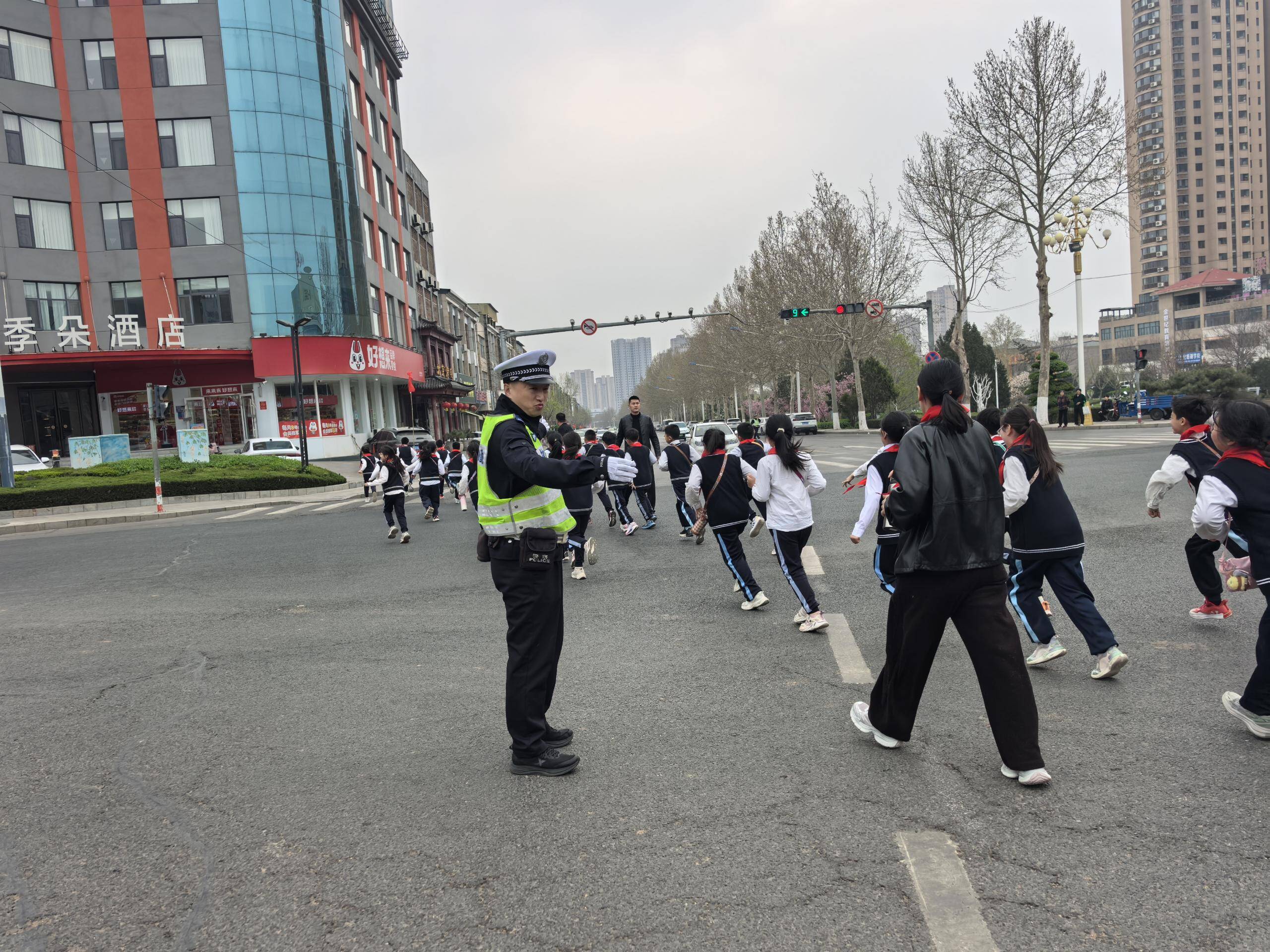 为确保师生出行绝对安全,济南交警莱芜区大队科学部署警力,全程护航,在主要路口定点值守,提前疏导过往车辆,管控通行秩序,保障师生安全、优先通行;民辅警紧随队伍两侧,时刻提醒注意路况,保持队形。行进过程中,与师生共同缅怀革命先烈丰功伟绩,感悟英烈精神,厚植家国情怀。用坚守筑牢安全防线,确保了活动的顺利举行和师生的绝对安全。