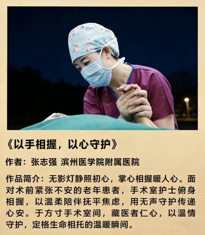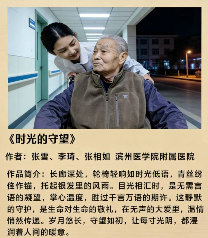 在“大爱无声 影动芳华”摄影展示交流中,滨医附院选送的三幅摄影作品全部成功入围现场展示。手术室张志强的《以手相握,以心守护》、消化内科张雪团队的《时光的守望》、产房李浩莹的《初见· 新生》,以细腻的镜头语言捕捉护理工作中温暖动人的瞬间,共同勾勒出护理工作的人文底色。