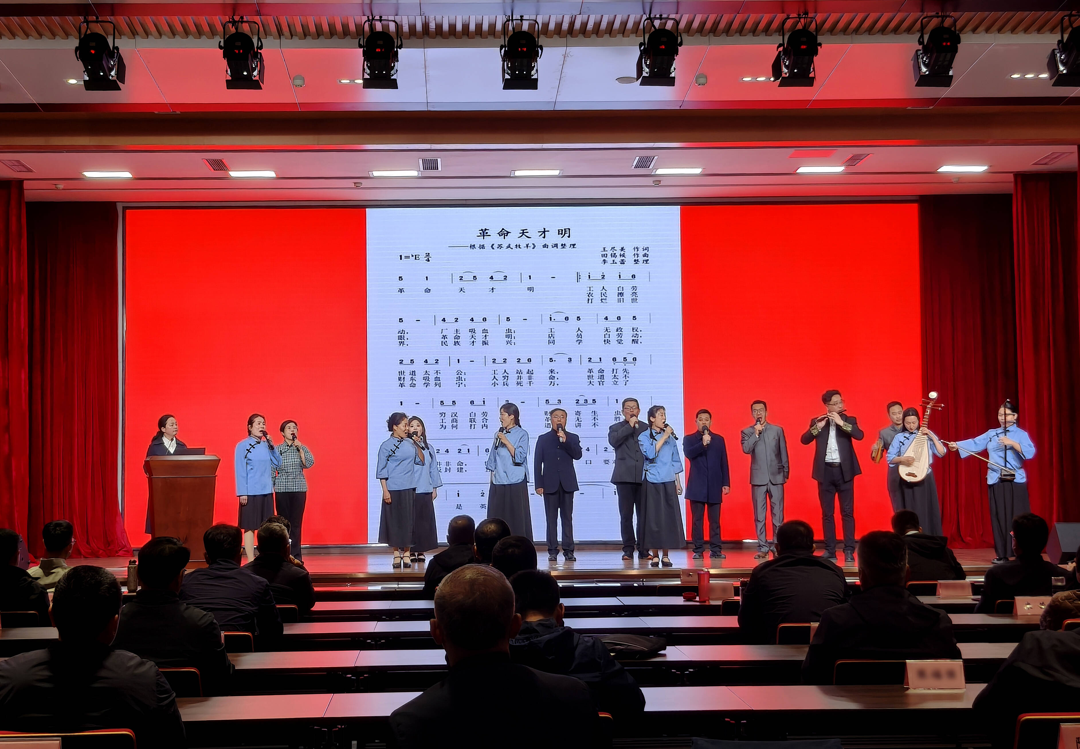 2026年3月31日晚,李玉蕾带领“励新歌社”社员,与王大伟、姜汀汀、王梓赫等基层文化指导员携手登台,为全省司法系统的广大党员干部献上了一场别开生面的音乐党课《歌声中的王尽美》。他们以歌声传递初心,让红色基因在艺术表达、声色交织的沉浸式氛围中更加鲜活。目前,该歌社已被列入“励新”王尽美红色诗歌艺术传承工作室的基层传唱点。