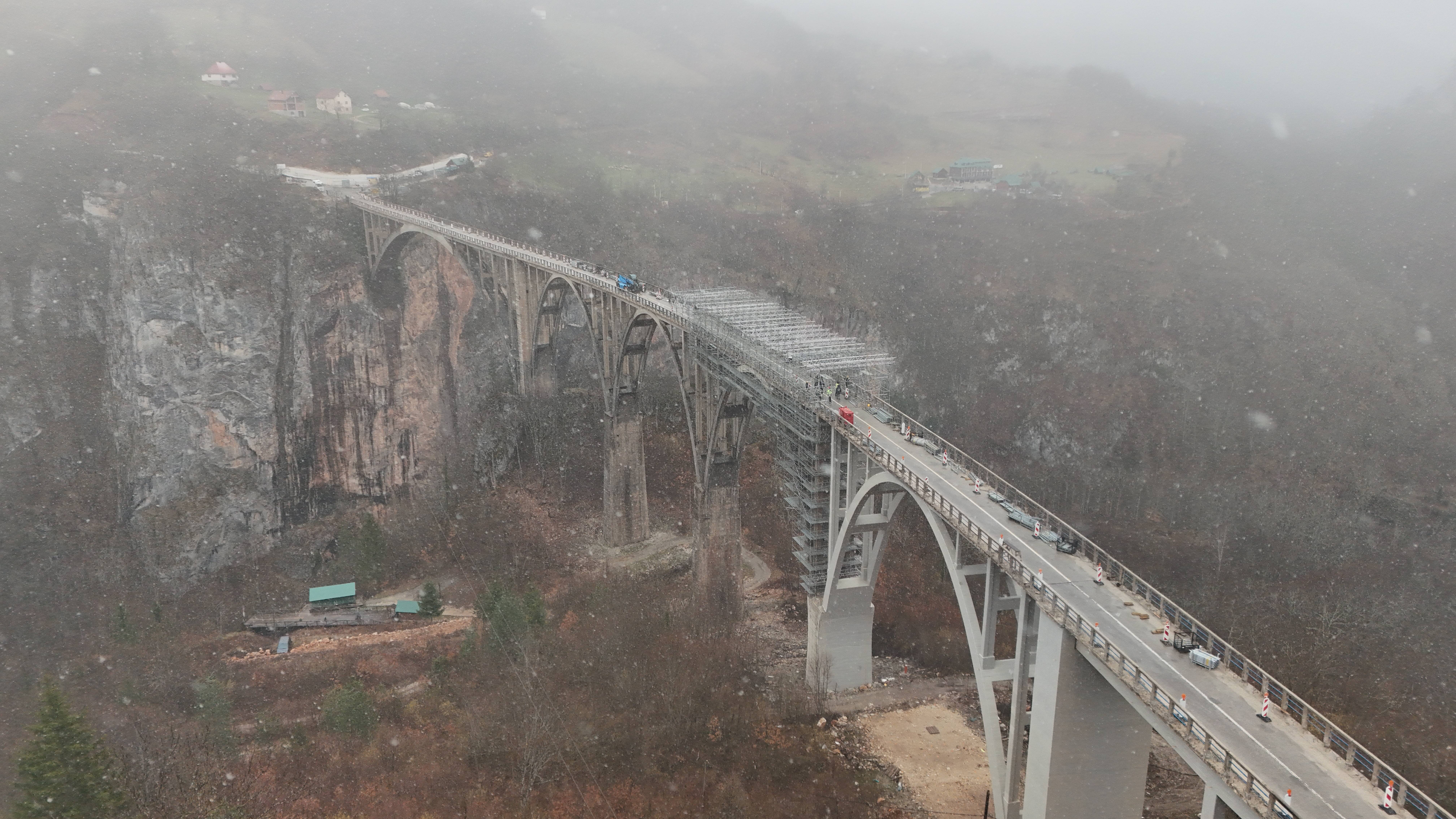 作为中国企业在黑山执行的首个援外成套施工项目,援黑山塔拉河大桥维修项目,是山东高速集团践行民心相通理念、履行社会责任的生动实践。这座始建于1937年的大桥,坐落于黑山北部塔拉河谷,完工时为欧洲最大的公路混凝土拱桥,更是前南斯拉夫电影《桥》的实景拍摄地,承载着当地的历史记忆与民生期盼,但其历经数十年使用,出现诸多病害,亟需专业维修养护。2025年7月,山东高速集团正式启动该项目维修工作,主要内容包括大桥病害修复、南北两岸接线道路改造、交通安全设施完善及停车场设置等,截至2025年底,已完成产值2001.74万元,达到合同总额的50.5%。施工过程中,项目团队充分考量当地实际,优先选用黑山本地及周边国家的建材供应商,既降低了物流成本,也带动了当地相关产业发展;同时吸纳数十名黑山本地技术工人参与建设,通过“传帮带”的方式,向当地员工传授先进施工技术与经验,助力提升当地建筑行业技能水平。