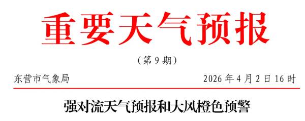 齐鲁网·闪电新闻4月2日讯 4月2日16时,东营市气象局发布强对流天气预报和大风橙色预警。