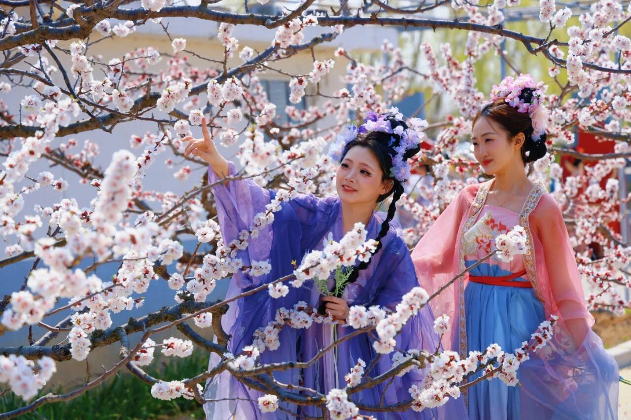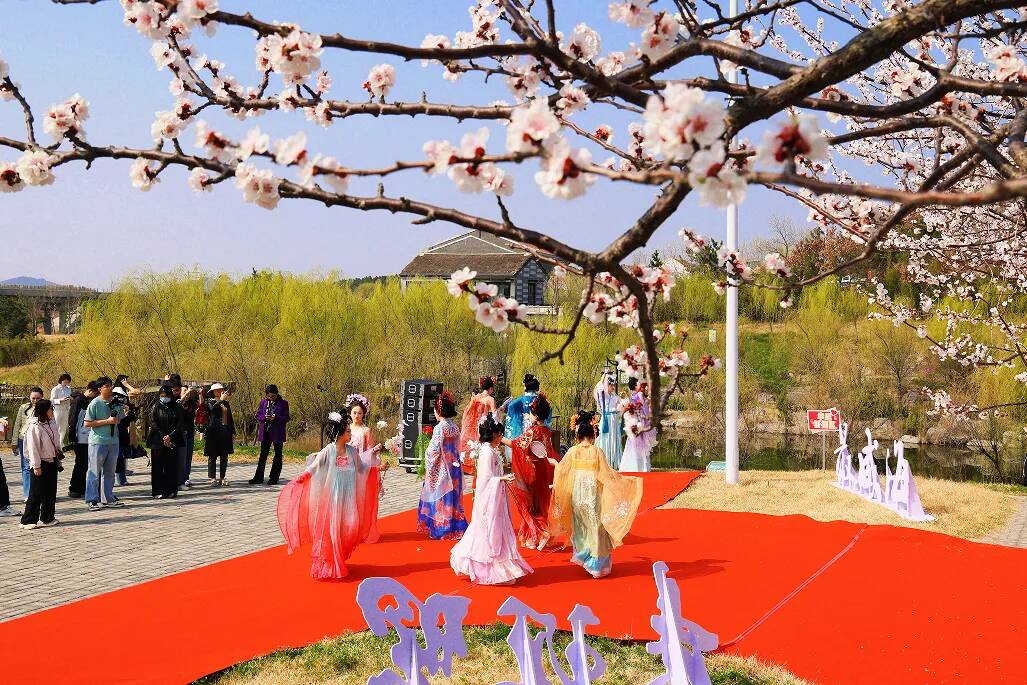 不少游客也纷纷换上汉服,穿梭在杏林间、村舍旁,沉浸式融入这片春日胜景。“本来只是想来赏杏花,没想到惊喜这么多!”游客吴帆笑着说,“‘花神’巡游有韵味,活动有趣味,在乡村感受到了满满的春日仪式感!”
