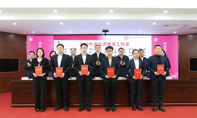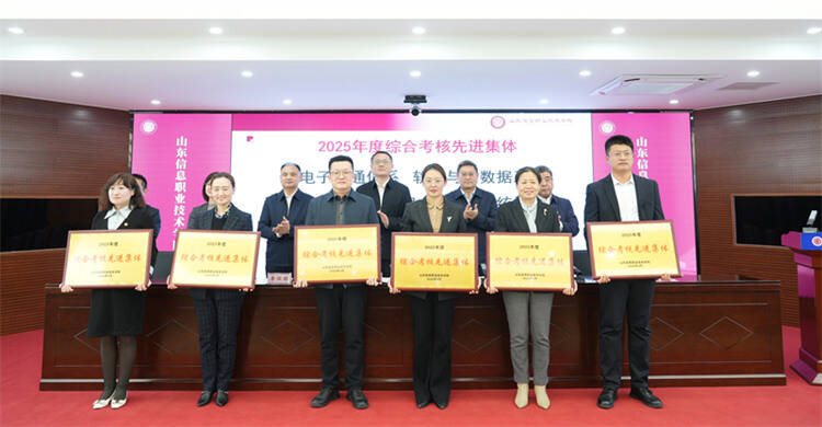 会上,全体参会人员共同观看了2025年学校工作发展专题片,党委委员、副院长张伟宣读了《山东信息职业技术学院关于表彰2025年度综合考核先进集体、优秀教师、先进教育工作者的决定》《山东信息职业技术学院关于表彰2025年度高质量发展单项奖的决定》《山东信息职业技术学院关于表彰2025年毕业生就业工作先进集体和先进个人的决定》,对23个先进集体、131名先进个人进行了通报表彰。1名教师代表结合部门和自身工作进行了典型发言,分享了成功经验和工作感悟,电子与通信系、软件与大数据系、招生就业指导处负责同志分别就“省双高校”专业群建设及产教融合、校企合作任务作了分析发言。