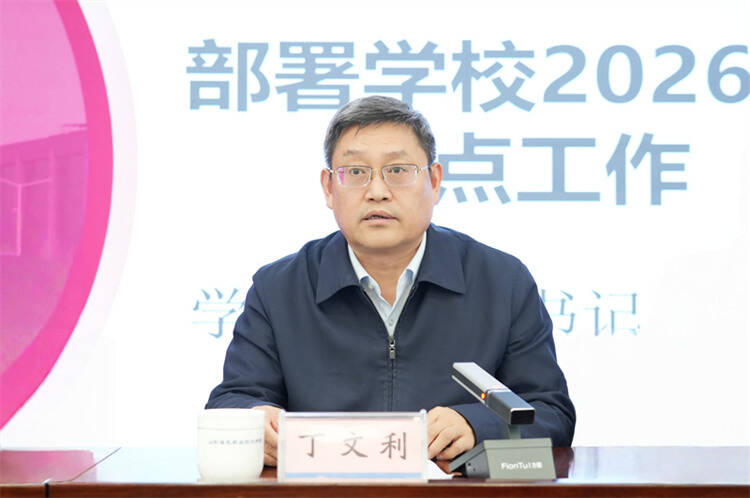 丁文利对2025年学校取得的成绩进行了简要总结,深刻分析了学校当前发展面临的机遇和挑战,对2026年全校重点工作进行了详细部署。他强调,今年学校工作将以“省双高校”建设为统领,以“对标攻坚、能力提升”为发展主题,聚焦党的全面领导、办学层次提升、“省双高校”建设、立德树人根本任务、人才队伍建设、教学关键要素改革、服务经济社会发展、智慧校园建设、现代治理体系建设、平安校园建设、服务保障提效十一个方面精准发力,解放思想、深化改革,狠抓落实、创新突破,奋力开创学校高质量发展新局面。