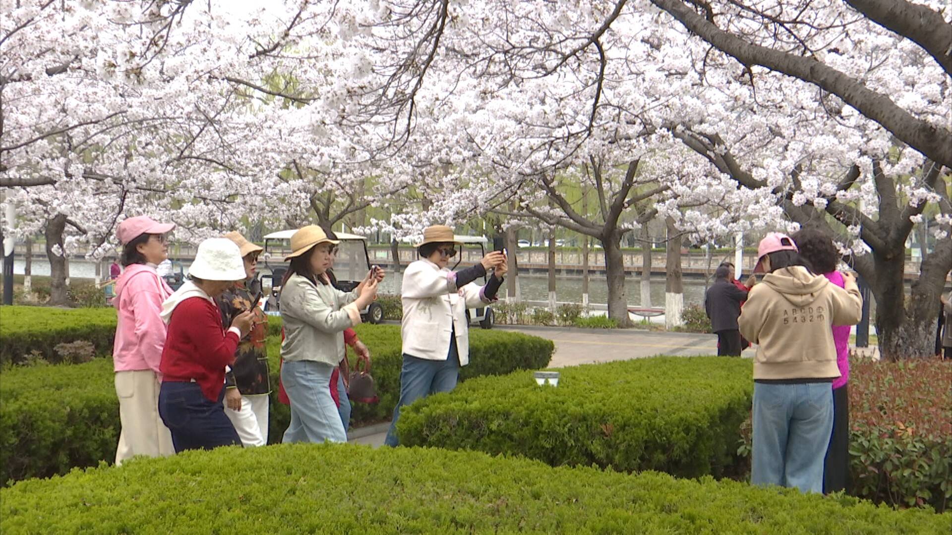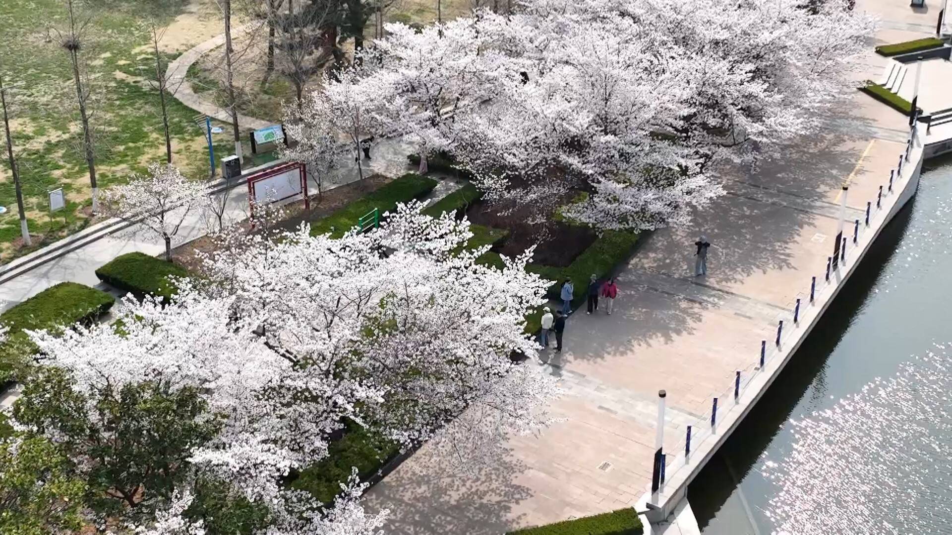 “我们三里河的樱花都开了,非常漂亮。约上了几个姐妹来活动活动,跳跳舞,感觉非常开心。春天来了,三里河的景非常美,来走一走,也是很放松的一件事。”市民姜红说。