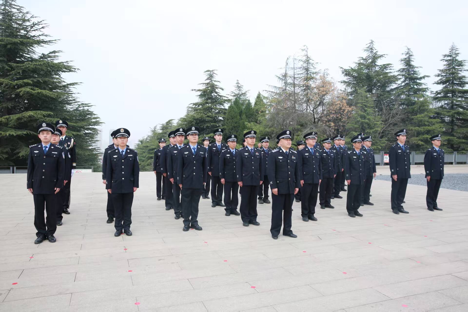活动现场庄严肃穆,全体干警列队肃立,静默缅怀。伴随着《献花曲》,礼兵敬献花篮,全体干警深情默哀,致敬革命先辈的不朽功勋。