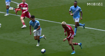 上半场补时第2分钟,塞梅尼奥边路下底传中,哈兰德摆脱科纳特防守将球顶进!曼城2-0利物浦!↓