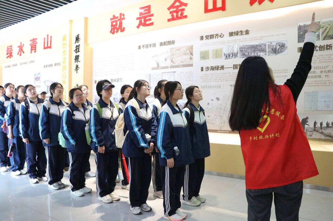 高唐一中31级校友、清平中学党支部书记、校长杨志刚深情讲述了这片土地的治沙史。昔日黄沙漫天的贫瘠之地,在几代人锲而不舍的奋斗下,终成林茂粮丰的绿洲。他勉励同学们,要像治沙人那样,磨砺迎难而上的意志,用奋斗书写青春担当。随后高唐一中学子依次走进纪念馆,认真聆听讲解员细致科普治沙历程与奋斗故事,一幅幅纪实影像生动镌刻一代代治沙人不畏艰辛、植绿固沙的拼搏历程,让高唐一中学子真切读懂实干担当、久久为功的奋斗精神。