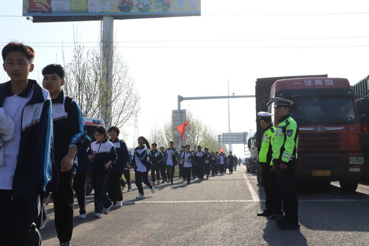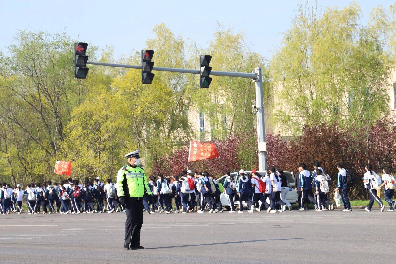 本次远足途中,交警、志愿者、救援队伍与医护人员全程在岗,沿路值守巡查、疏导交通、应急备勤,全方位筑牢安全防线,全力保障师生出行平安,为活动顺利开展提供坚实保障。