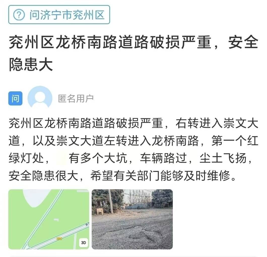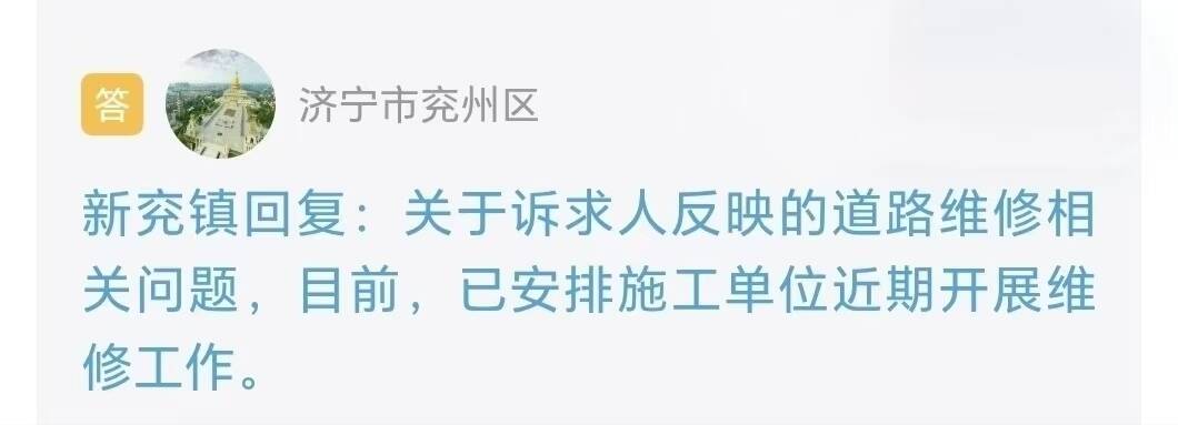 收到留言后,新兖镇进行了办理并回复:关于诉求人反映的道路维修相关问题,目前,已安排施工单位开展维修工作。