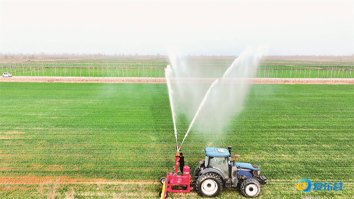 崔永训介绍,今年黄河水源来水及时、水量充足,自家基地2000多亩农田全部实现水肥一体化喷灌,相较于传统大水漫灌,节水率达到60%以上。“过去浇地,得雇好几个人专门看管水渠,费时又费力;现在只要打开开关,就能实现自动灌溉,省下的人力和时间,还能打理其他农活,今年小麦丰收肯定有保障。”