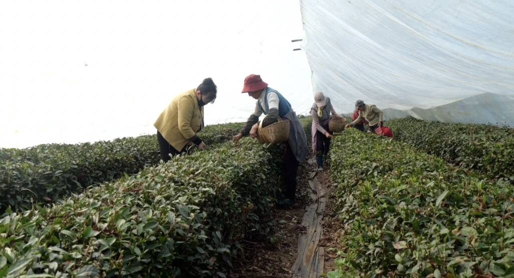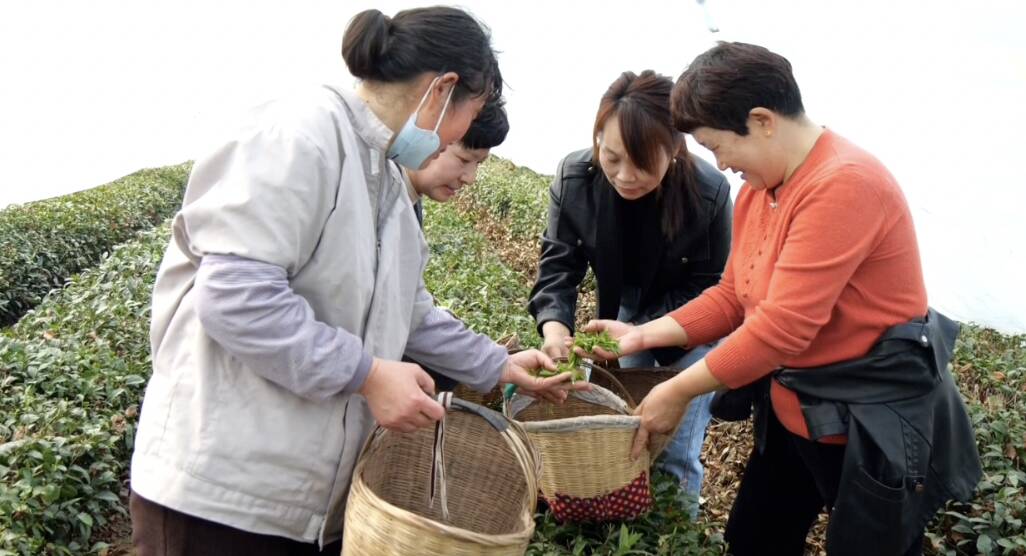 采茶工人吴燕介绍:“我是附近河口村的,天天来这里采茶叶,一天能采7-8斤,(每天)能挣个70-80元。离家又近,又挣钱,还能照顾老人,非常方便。”