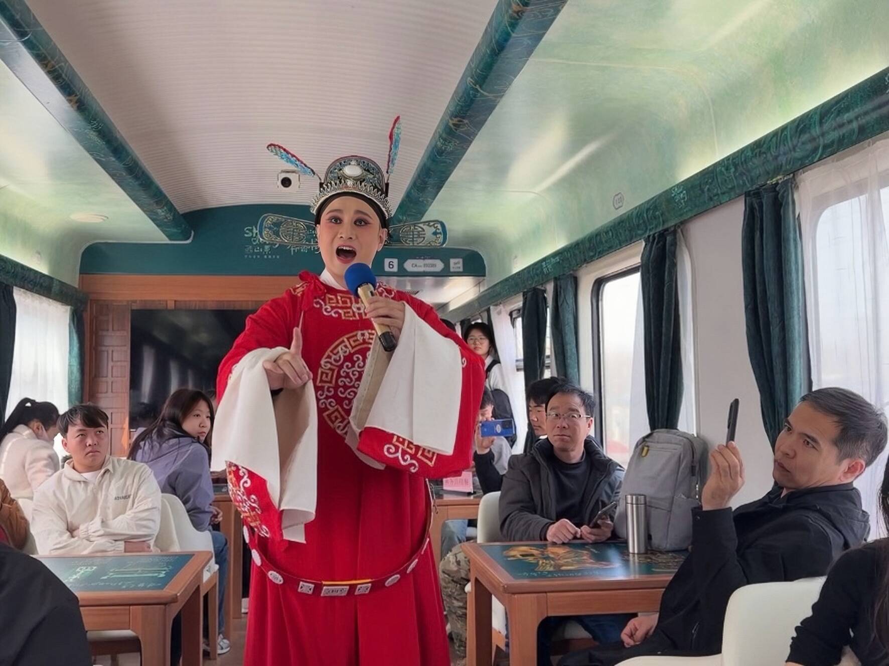 掌声、叫好声此起彼伏,旅客纷纷举起手机,定格这难得的“移动剧场”瞬间。“没想到在火车上能听到这么正宗的吕剧,这一趟太值了!”一位游客动情地说。