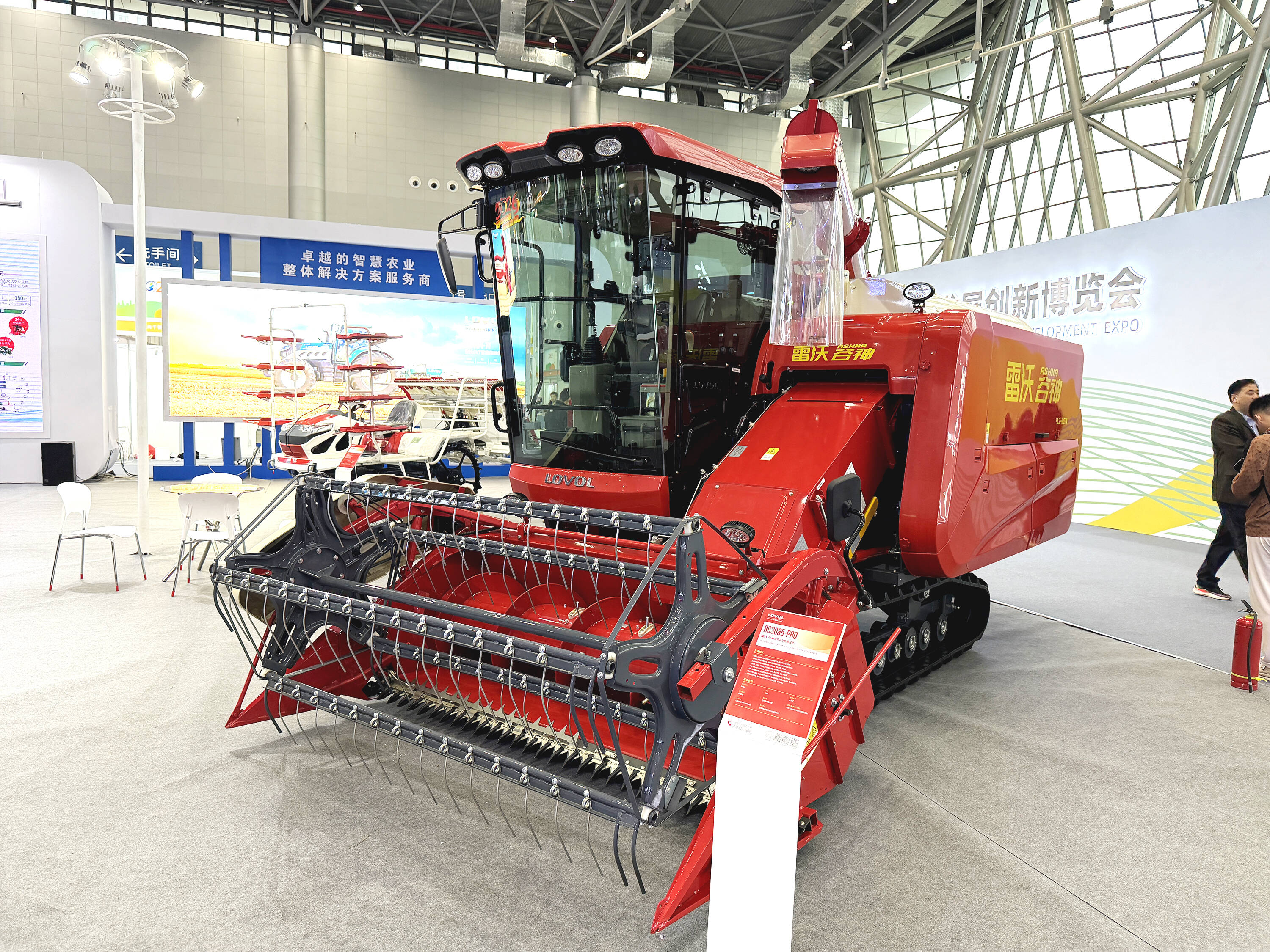 在收获机械展区,针对安徽地区水稻、小麦、油菜等多种作物并存的复杂作业场景,潍柴雷沃智慧农业带来了插秧机、轮式与履带收获机械的产品组合。