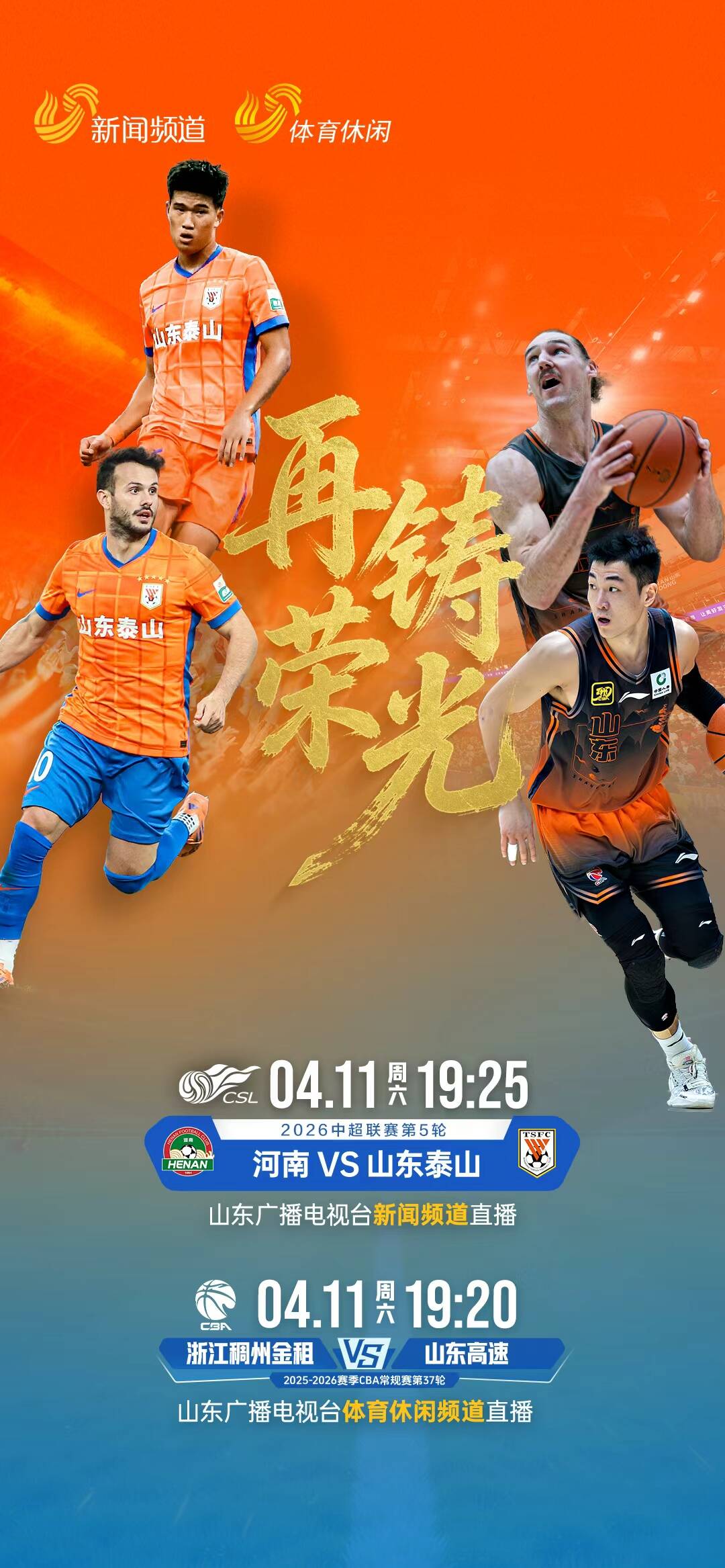 4月11日19:25,锁定山东广播电视台新闻频道,一同为山东泰山队呐喊助威,期待球队客场取胜,用一场酣畅淋漓的胜利,为广大鲁蜜带来振奋人心的春日惊喜。