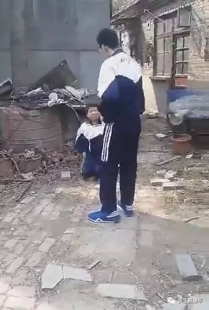 视频截图里的中学生正在强迫一名学生下跪,这是一起校园霸凌事件。