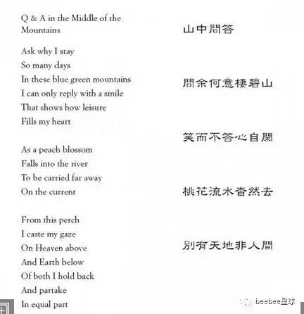《山中问答》被翻译成Q&A in the middle of the mountains
