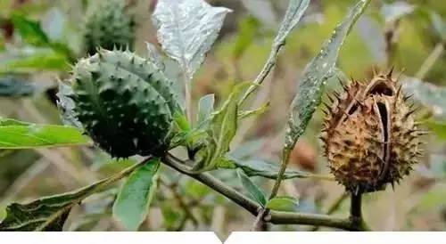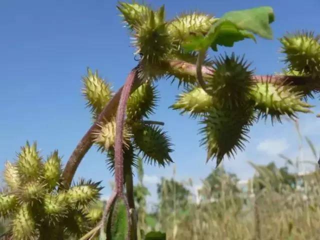4、苍耳:有很多硬刺,小时候男生常把它粘到女生头发上,简直想哭。或许你不知道,它全株都有毒(贝壳杉烯毒苷),以果实、特别是种子毒性较大。