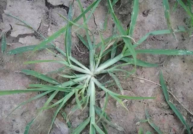 9、马唐草:杂草,跟牛筋草差不多,根蔓延成片,一年生草本植物,高可达80厘米,叶鞘短于节间,叶片线状披针形,基部圆形,边缘较厚,微粗糙,茎直立或斜生,下部茎节蔓延成片,难以拔出。