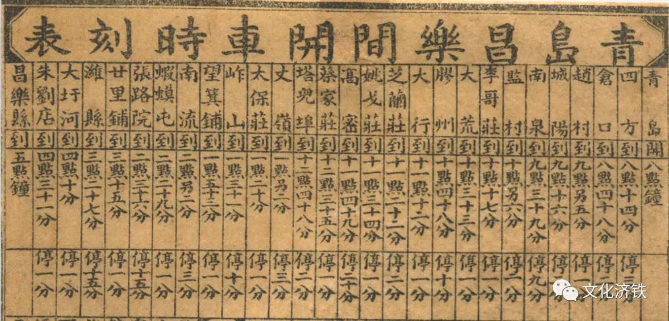 1909年的青岛至昌乐间列车时刻表。青岛到潍县要7个半小时。