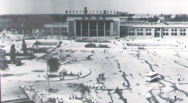 1964年,潍坊市又在弯道西侧修建了600平方米的沥青罩面的小型广场。图为60年代的潍坊站广场。