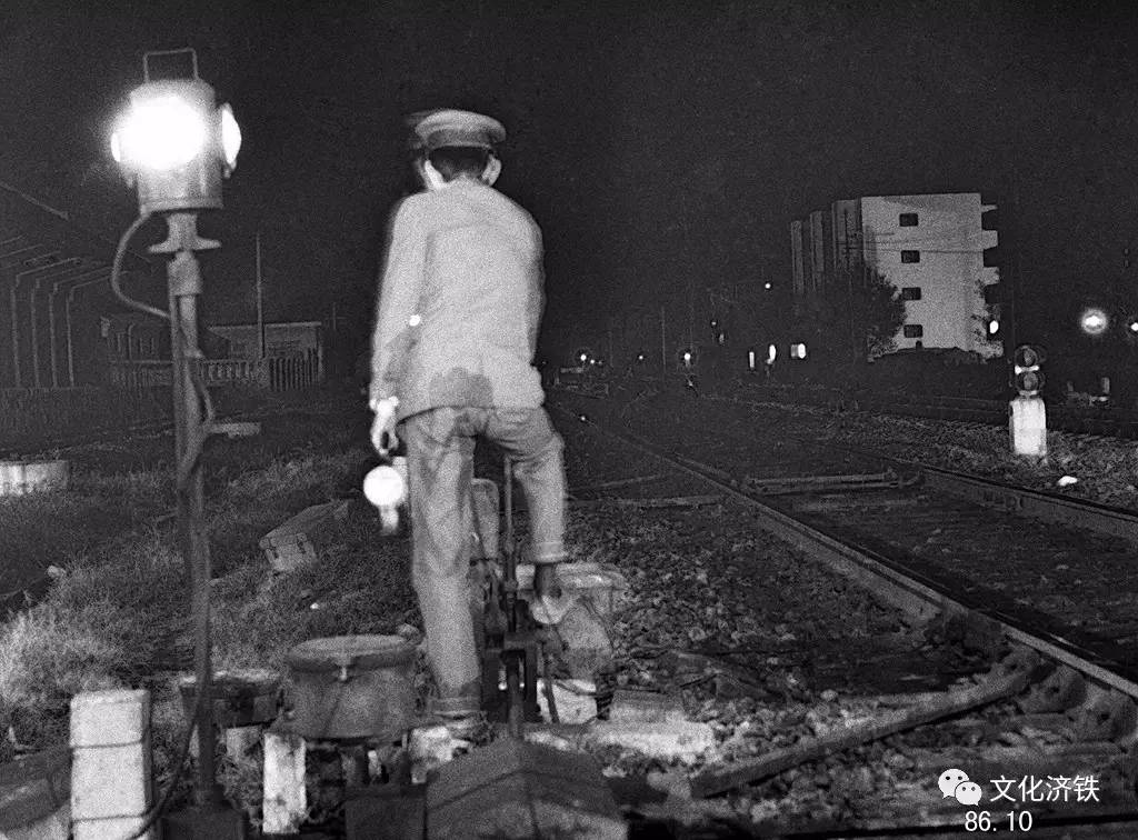 1986年,夜间工作中的潍坊站扳道员。
