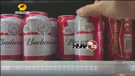 从瓶身包装可以辨认出,视频中生产制作的是百威啤酒,随后记者走访多家超市,找到了与网络视频中同款的百威啤酒。