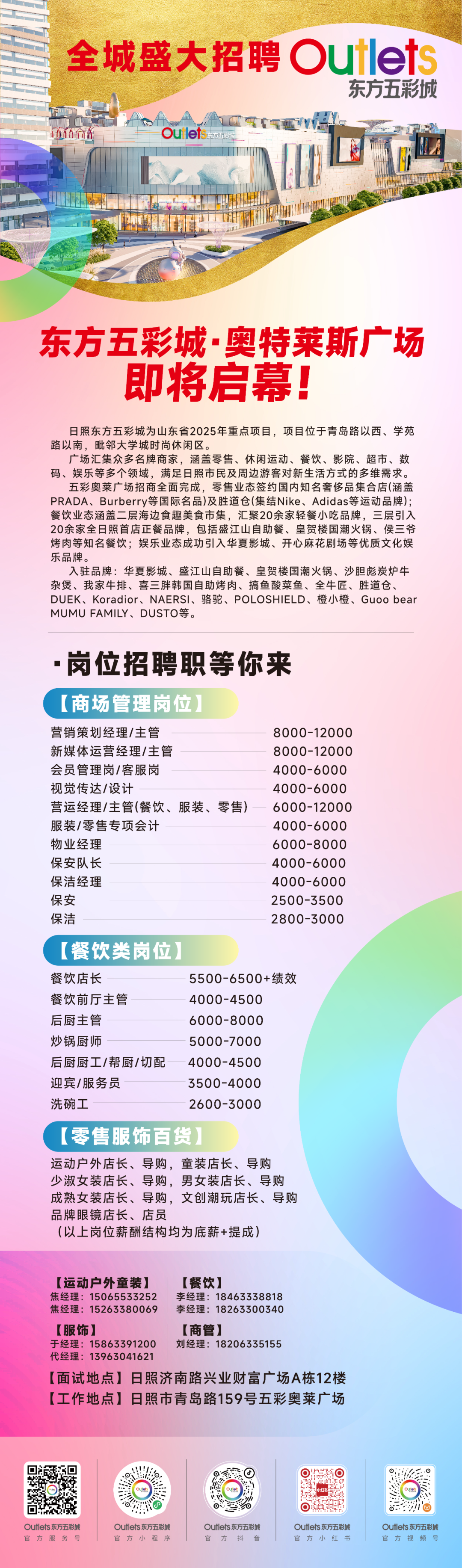 日照东方五彩城·奥特莱斯广场即将启幕 岗位招聘进行中