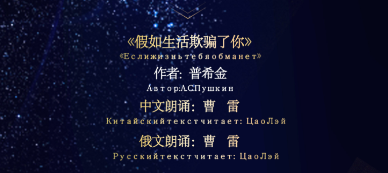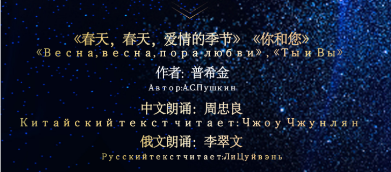 今天,在纪念这位伟大诗人诞辰221周年的时刻,中俄两国的朗诵者们,虽地处异域,却心潮澎湃,共同诵读诗人的不朽名篇,共同追思诗人的高尚情怀!