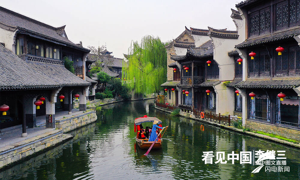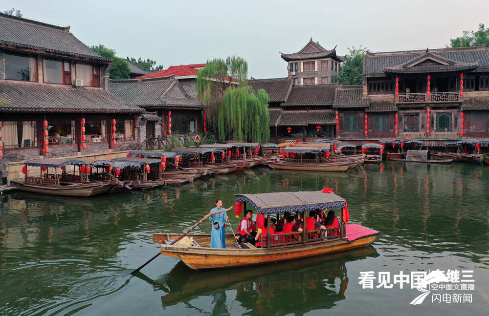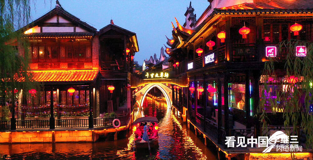 从古城西门进入,仰望城门楼之上,“中华古水城”“天下第一庄”的匾额在灯光的映射下,清晰可见,夜幕下的古城美不胜收。古运河边、大衙门街游人络绎不绝。汪塘沟渠的流水与古朴的青石板融为一体。游人乘坐在内河摇橹船上,听着船妹子婉转悠扬的歌声,伴着摇橹船荡起的水花声,仿佛回到了梦里水乡。